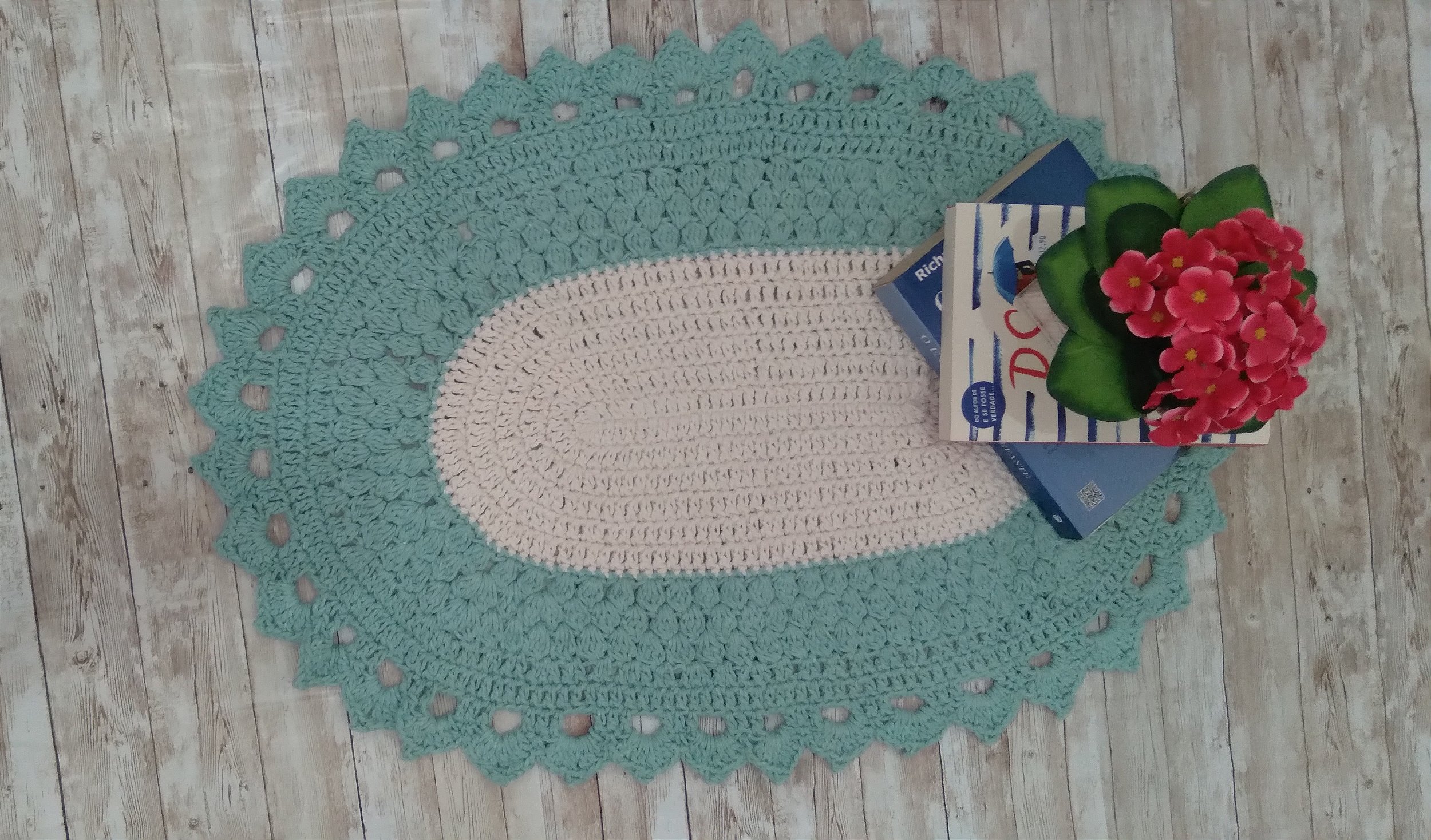 "Imagine-se passeando por um campo perfumado de capim-limão em uma tarde de verão, onde o sol lança raios dourados que aquecem sua pele suavemente. Meu tapete de crochê oval, carinhosamente apelidado de 'Capim Limão', captura a essência dessa experiência. Com sua forma oval, ele evoca a fluidez e movimento da brisa de verão, que balança suavemente as folhas de capim-limão. Feito com fios de um azul sereno e padrões que se assemelham às ondas suaves do campo, este tapete é um convite para que seus pés desfrutem da suavidade e conforto que só o crochê pode proporcionar. Cada ponto, meticulosamente tecido à mão, é uma homenagem à natureza e à artesania. Coloque o tapete 'Capim Limão' em sua casa e permita que ele preencha o ambiente com a calma e frescor de um campo de capim-limão, criando um refúgio de tranquilidade em seu lar."
